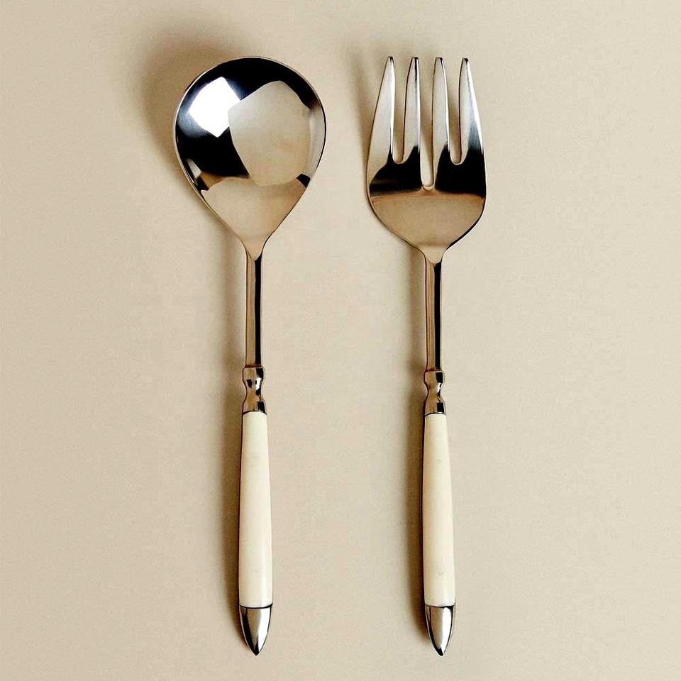 Stainless Steel Silver Polished Salad Server with Unique Silver Long Handle Tableware Set Royal Dining Salad Server Set