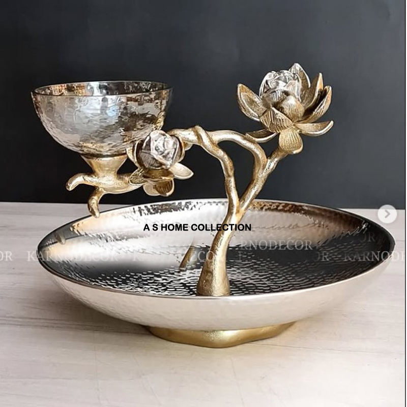 Stainless Steel Leaf Branch Decoration Large Bowls and Platter Exclusive Quality Multi Purpose Decorative Metal Fruit Bowl