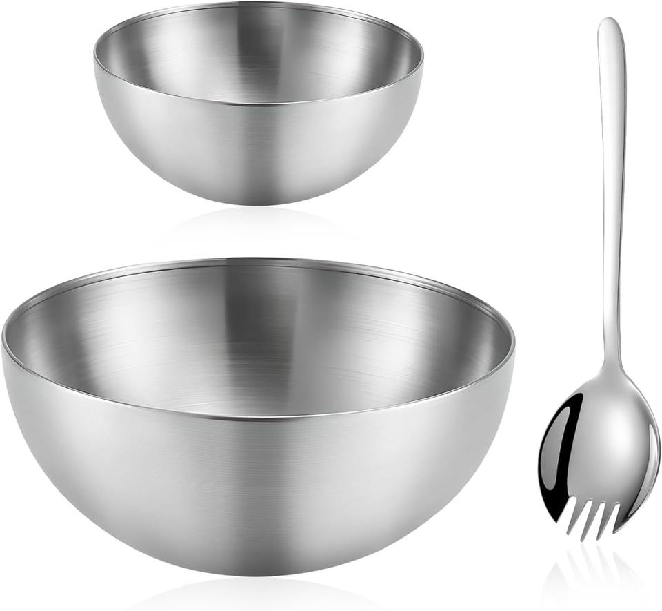stainless steel mixing bowl set with serving spoon modern metal prep bowl for kitchen baking salad fruit food decor trending new