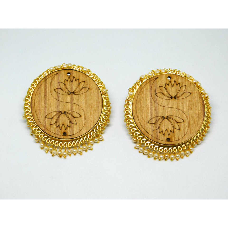 stylish fashion Trending handmade golden matte finishing round lotus design wooden hoop stud earing for girls and women