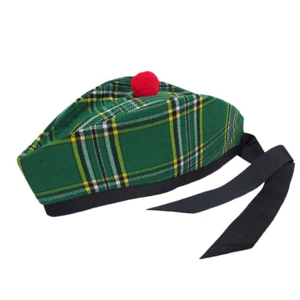 tartan Glengarry hat, a traditional Scottish cap made of wool or acrylic wool, featuring a pom-pom on top and a side