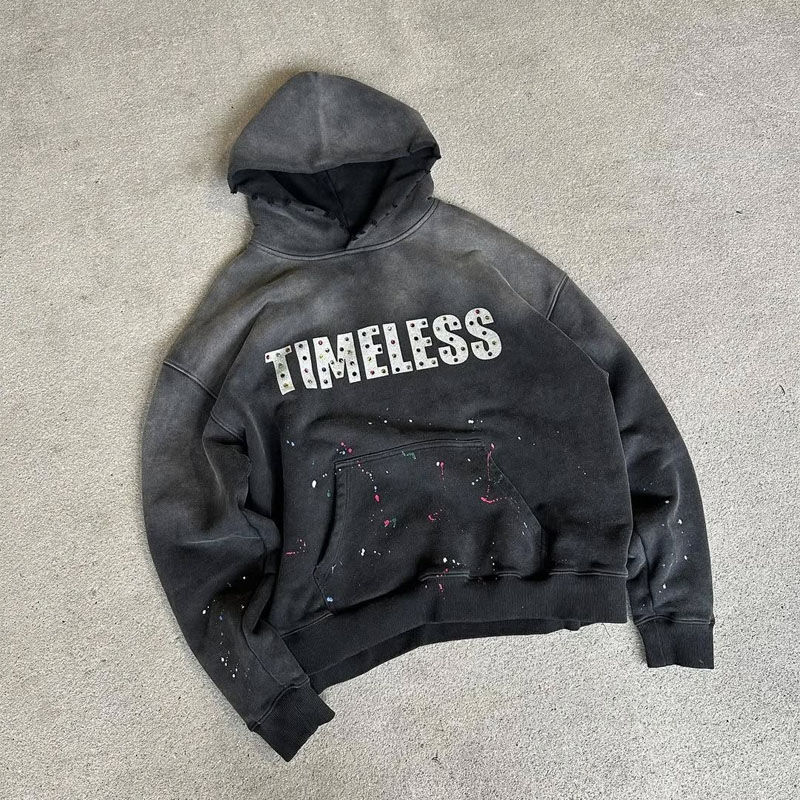 top Trend Men's Acid Washed Rhinestone Hoodie Vintage Distressed 100% Cotton Streetwear with Paint Splatterin for Men hoodie