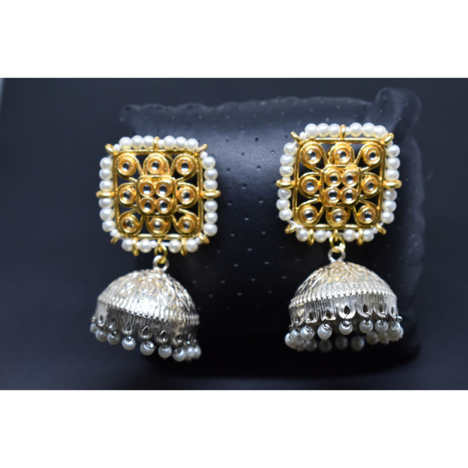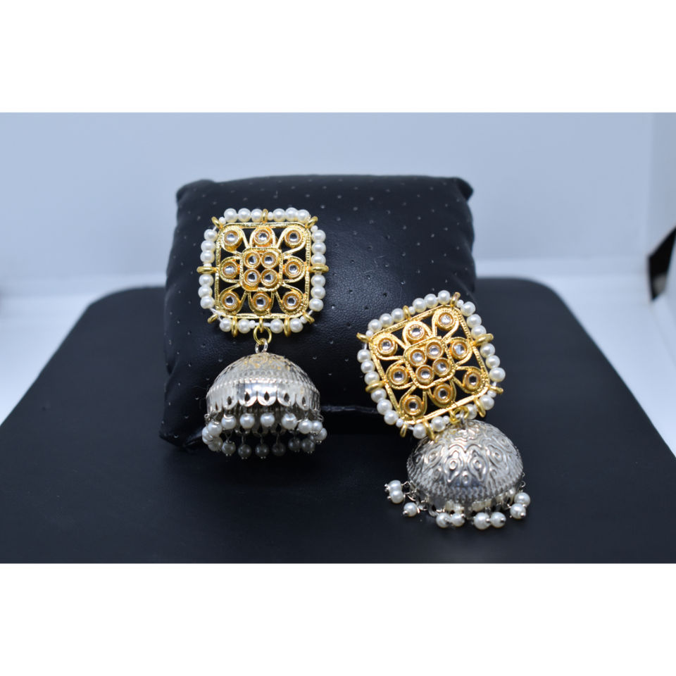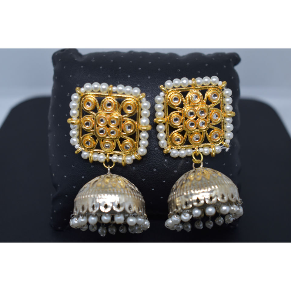 traditional latest fashion handmade golden kundan stud white jhumka brass hoop earing for girls and women