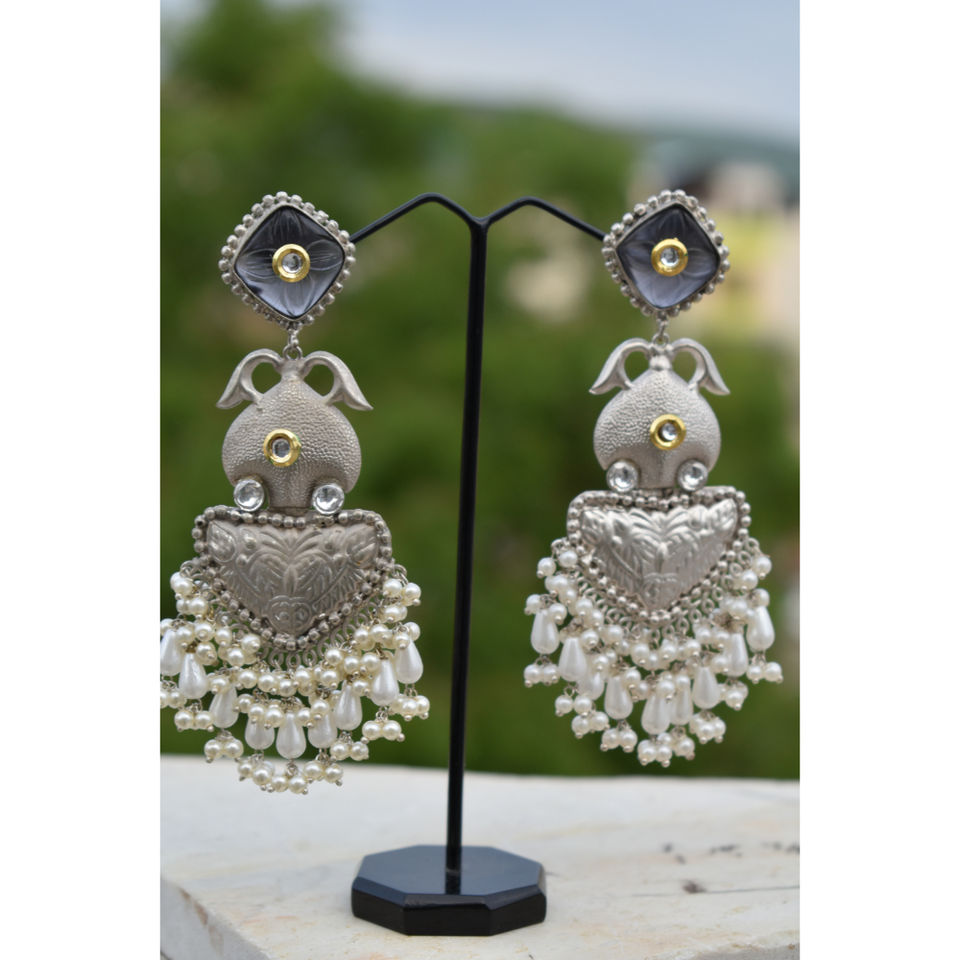 traditional new design handmade silver look alike brass stone stud big ghungro hoop earing for girls and women