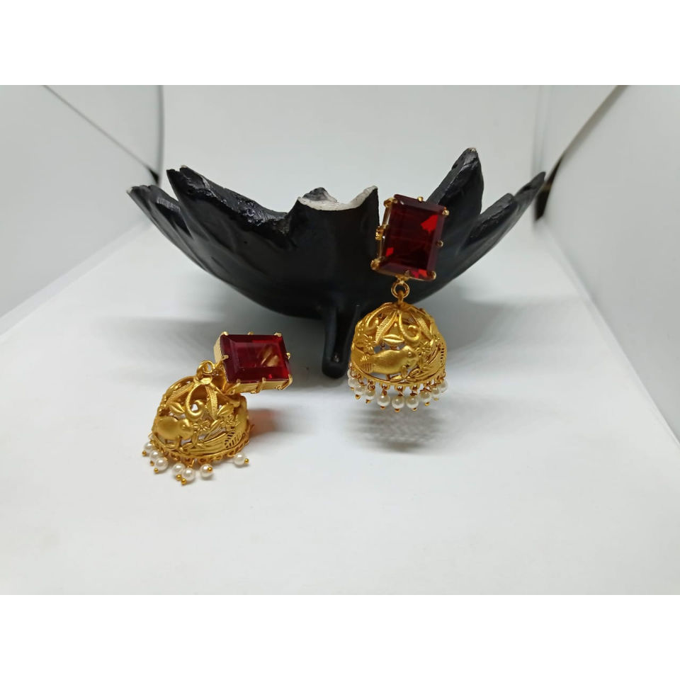 trending handmade traditional fashion brass goldplated designer stone stud jhumka earing for women and girls