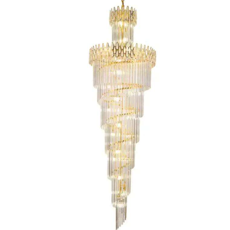 Trendy Gold Spiral Staircase Pendant Light Multiple Pendants for Villa Lighting Long Middle Lamp Size