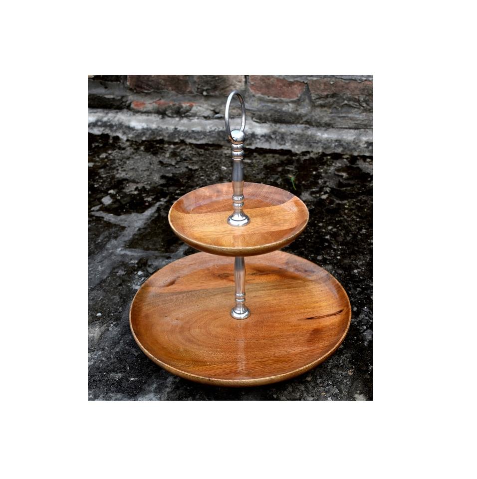 two Tier Wooden Cake Stand Premium Quality Handmade Luxury Cake Stand Round Shape Affordable Table Top Cake Stand