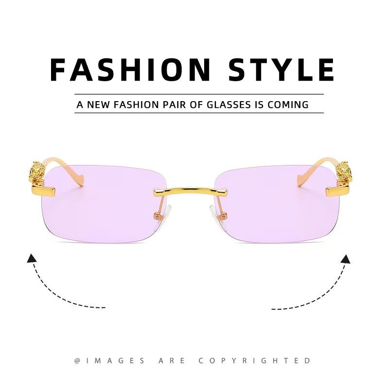 unique european american rimless leopard print metal women style sunglasses square colorful design uv protection