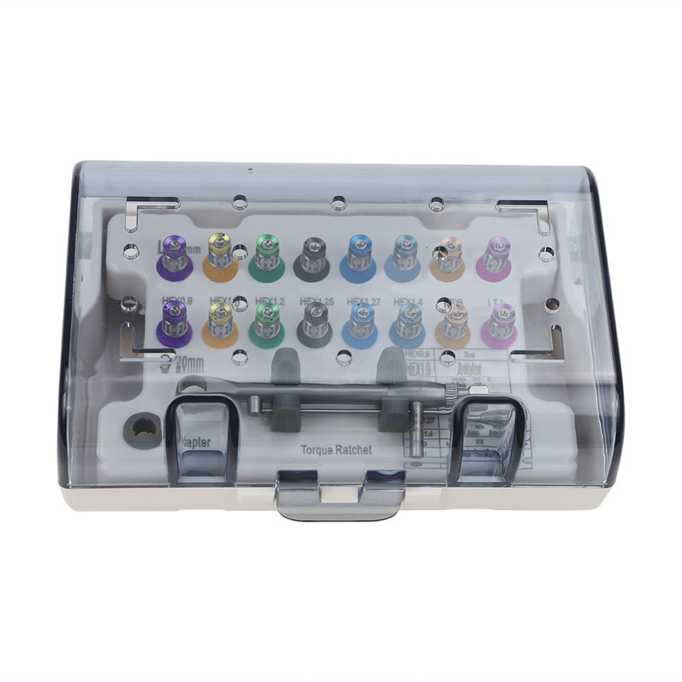 universal dental implant tool kit Color-Coded Dental Implant Prosthetic Kit 16pcs Torque Wrench Drivers Ratchet Set