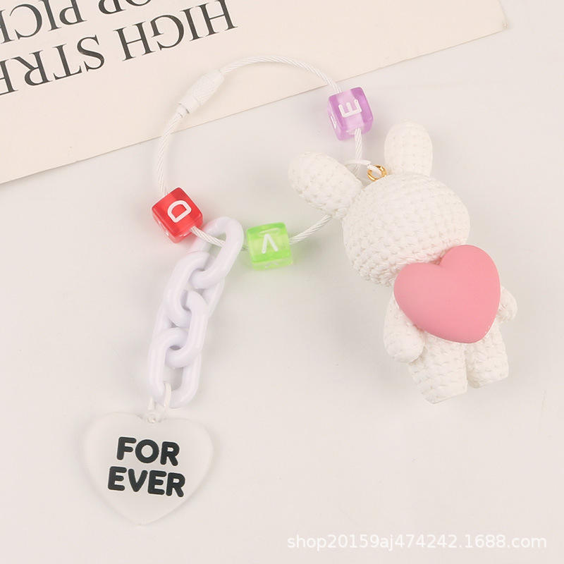 ute Tsartun Plush Car Keychain Pendant Creative Colorful Heart Rabit Letter Bead Accessories Decoration