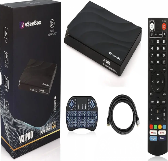 vSeeBox V3 Pro Smart Android 11 TV Box with Voice Remote Control Mini and HDMI Cable, 4GB RAM, 64GB ROM