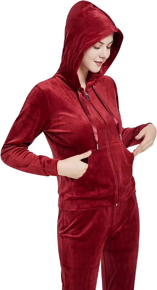 Velvet Wholesale Winter Embroidered Streetwear Women's 2 Piece Zip-Up Top & Matching Leggings Tracksuit Set