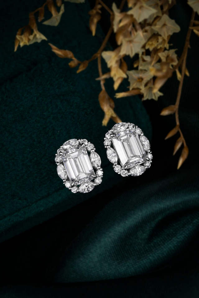 vintage PT900 2 Carat Lab Grown Diamond Stud Earrings Cushion Shape-for Weddings Engagement Anniversary Party Gift
