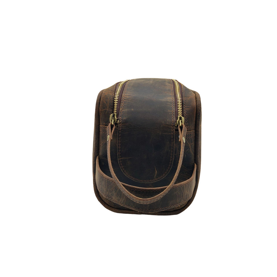 vintage leather toiletry bag for men travel dopp kit with zipper closure water-resistant lining spacious compartments