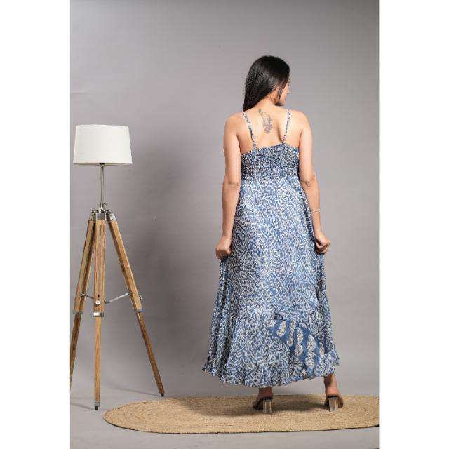 Vintage Women's Maxi Silk Dress for Summer & Beach Wear Washable Woven with Smocking Detail