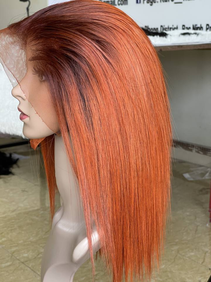 virgin Indian human remy hair orange color bone straight transparent Swiss lace front wigs