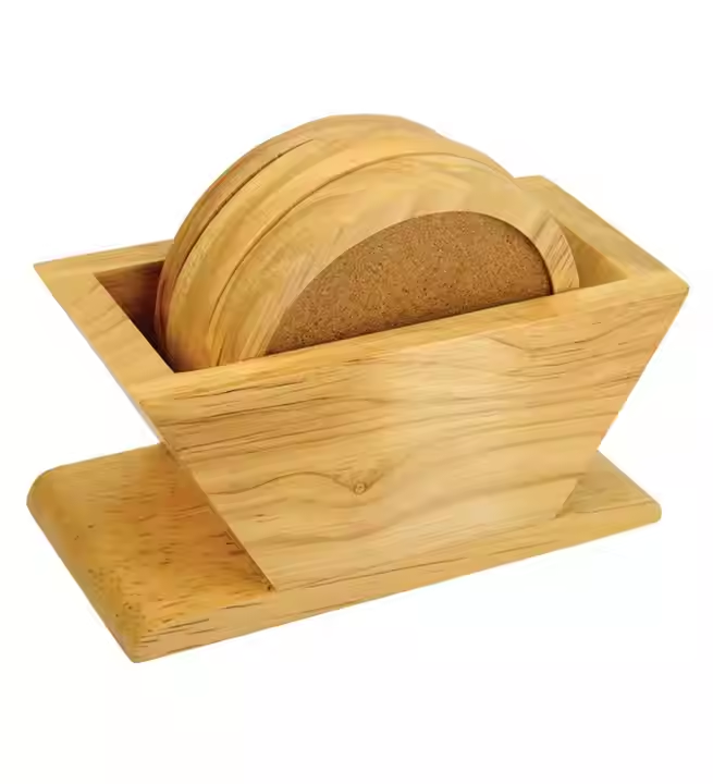 Walnut Coasters Wooden Trolly Shape Tea Coaster Set Table Tea Set Decorative Tea Coaster Set by Crescent Crafts