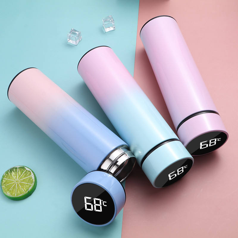 Gradient Color 500ml Vacuum Thermos Flasks Water Bottles Led Screen Panel Touch Thermos with Infuser Temperature Display