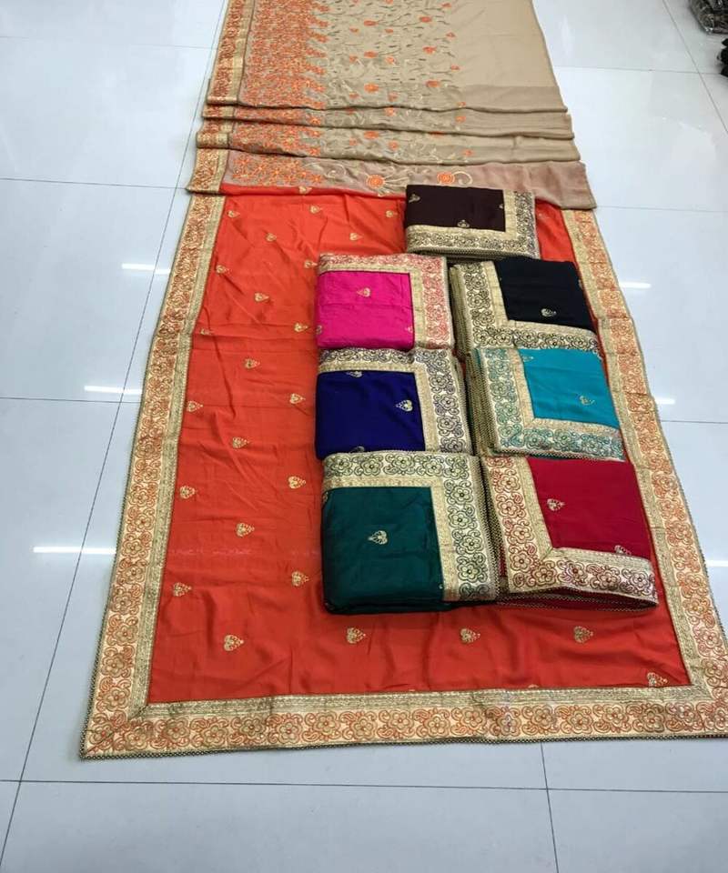 Wedding Wear Sari With Embroidered Blouse ApparelGarment