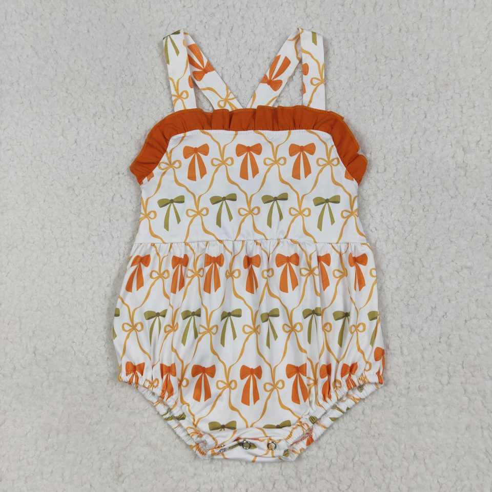 western baby clothes Infant baby girl orange green bows kids wholesale romper short sleeve RTS jumpsuit child set