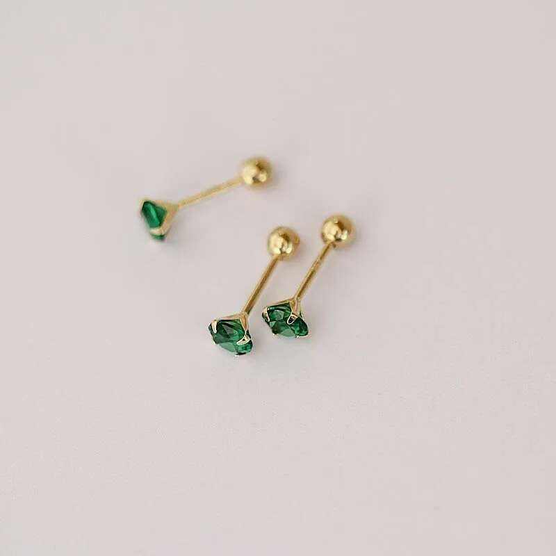 wholesale 14K Gold Stud Earring for Women, Green Emerald, Noble, Wedding Party, Fine, Solid, New Arrival, 2021, kj225