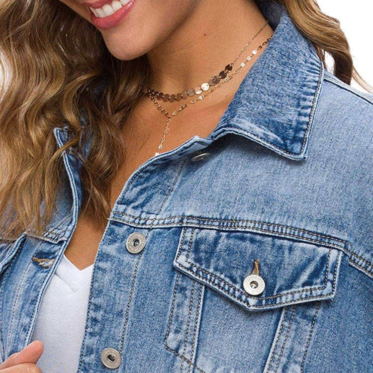 wholesale 2024 Custom OEM Women's Denim Jackets Oversize Long Sleeve Basic Button Down Jean Jacket with Pockets Plus size