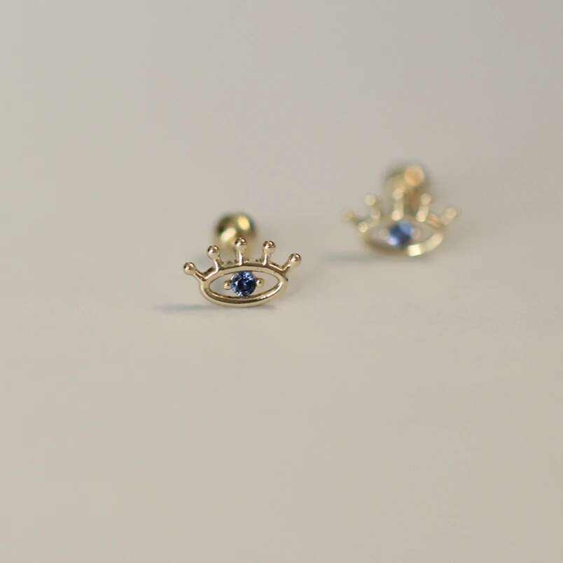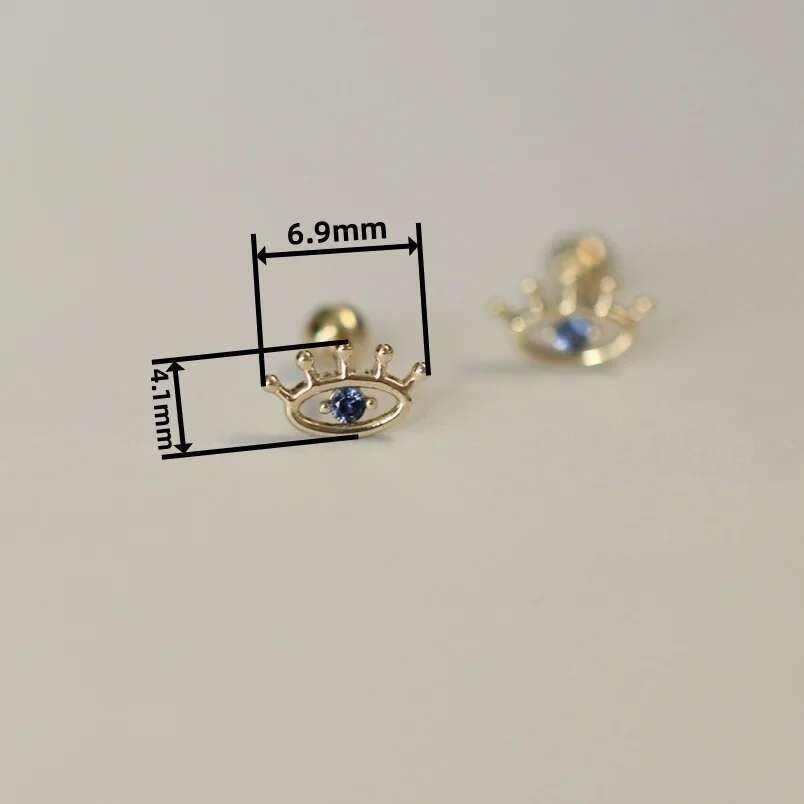Wholesale 9K Solid Gold Fine Stud Earrings with Blue Eye Crystal Screw Back and Moissanite KJ420