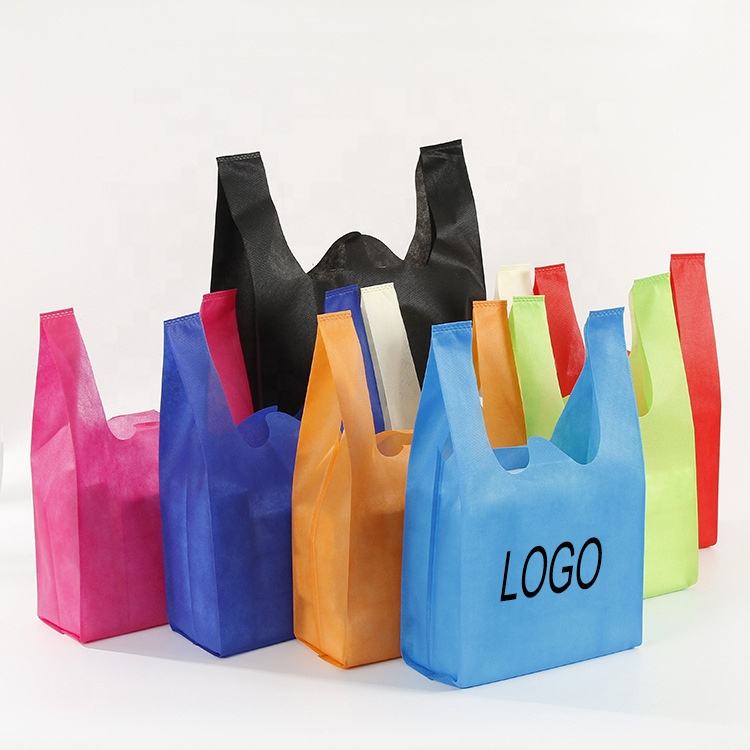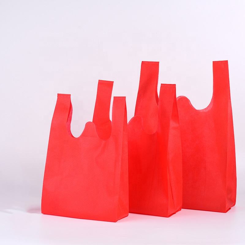 Wholesale Cheap Reusable Non Woven Retail Shopping T-shirt Bag Eco Friendly Non Woven Carrier Tote t Shirt Bags for Shopping