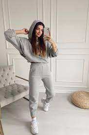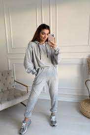 wholesale Custom Rhinestone Design High Quality Casual 100% Cotton Women Winter Crop Top Plain Tracksuit