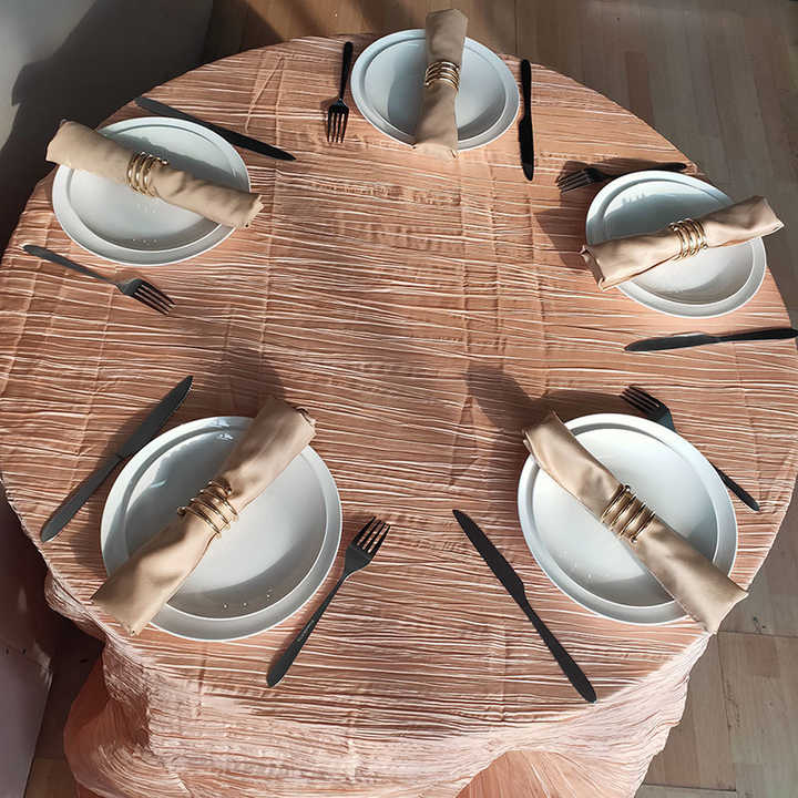 wholesale Customized Color Round Polyester Solid pleated Table Cloth Colorful White Crinkle Taffeta for Wedding Events
