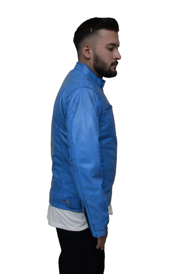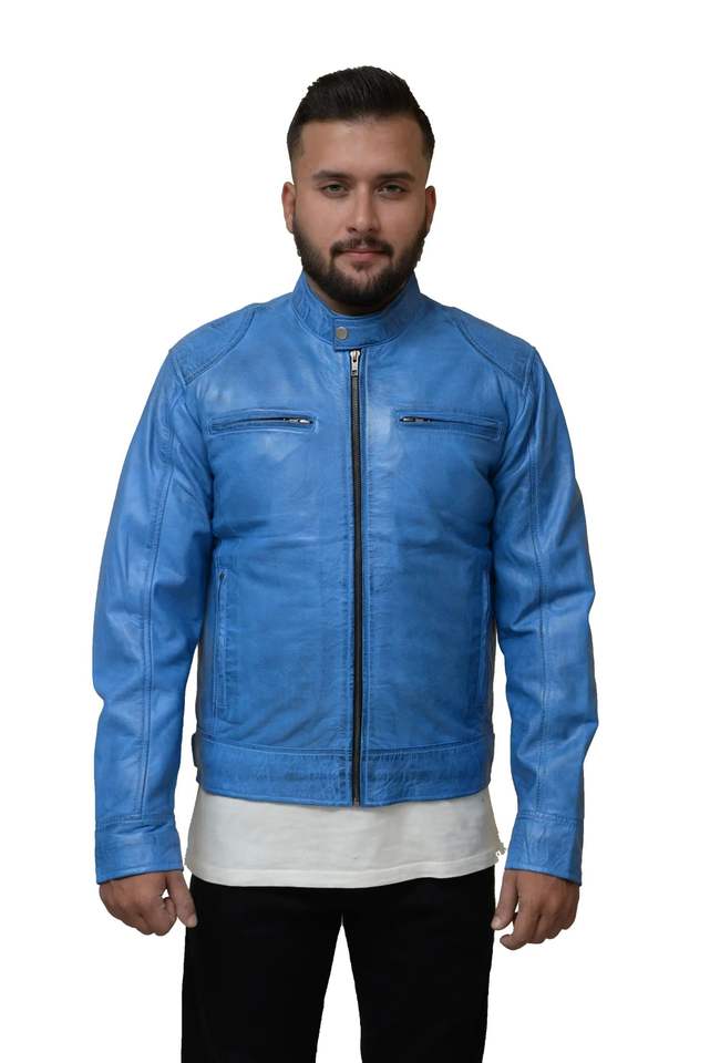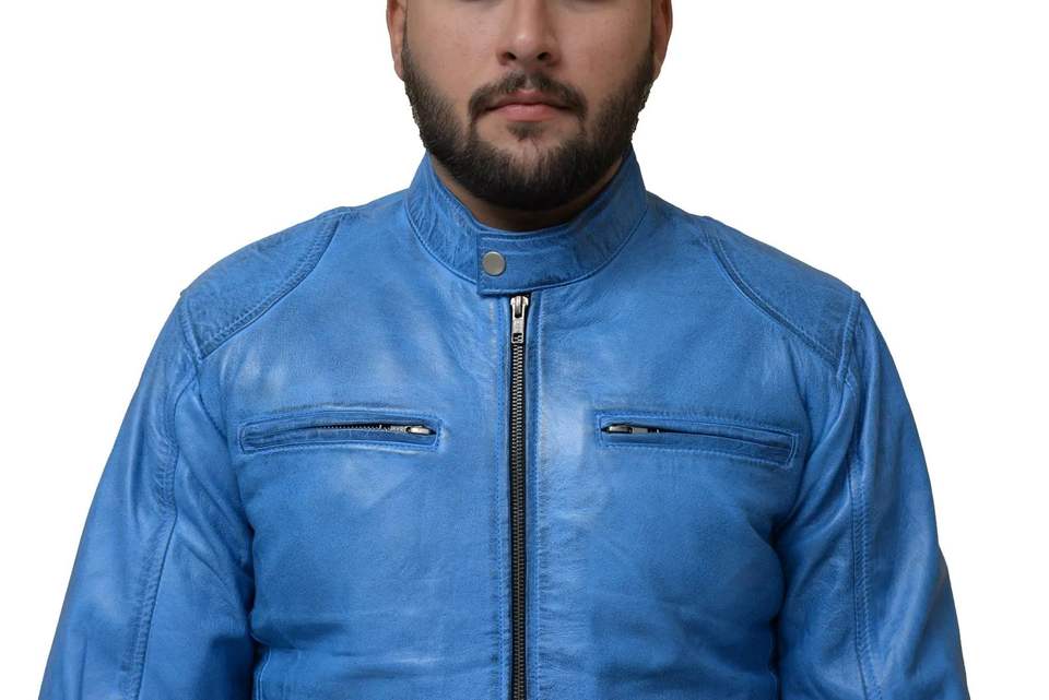 wholesale Men's Stylish Blue Leather Jacket High Quality customized logo wholesaler professional manufactures