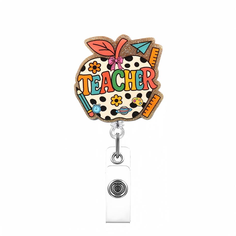 wholesale Wholesale Decorative Teacher Office Badge Reel Retractable Bling Student Badge Holder With Alligator Clip