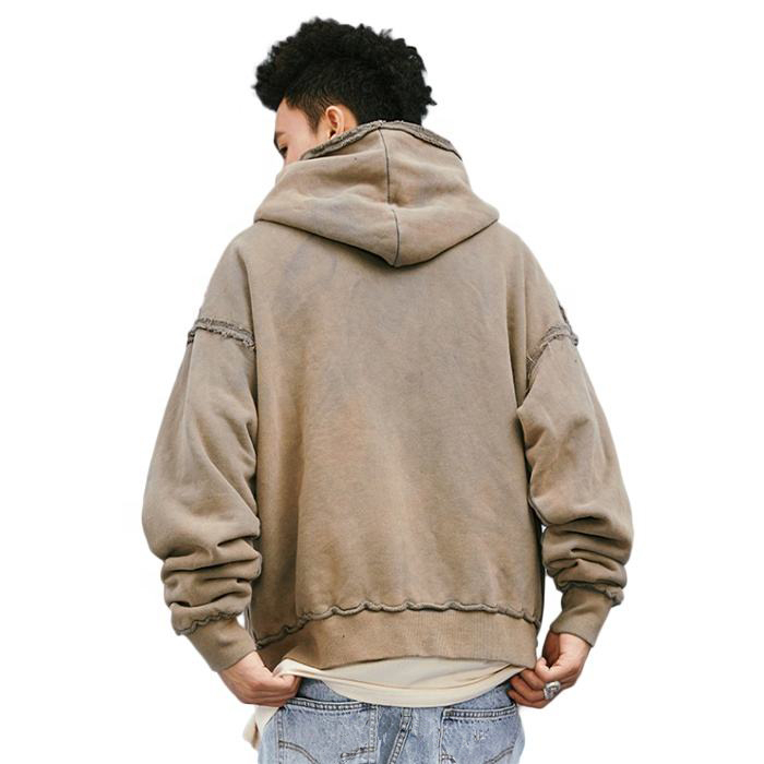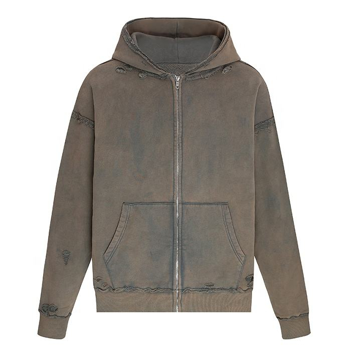 wholesale bulk vintage wash zip up hoodie men raw edge custom distressed blank zipper hoodies 100% Cotton Fleece Customization