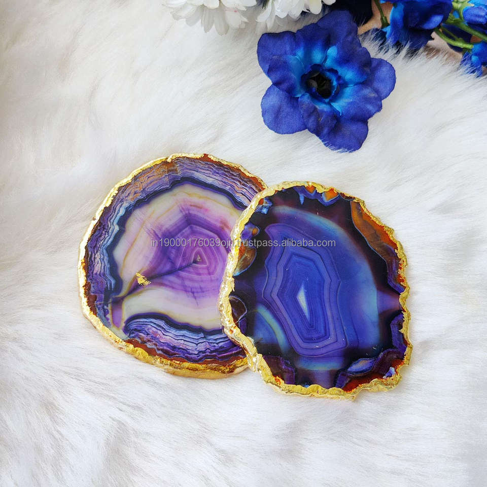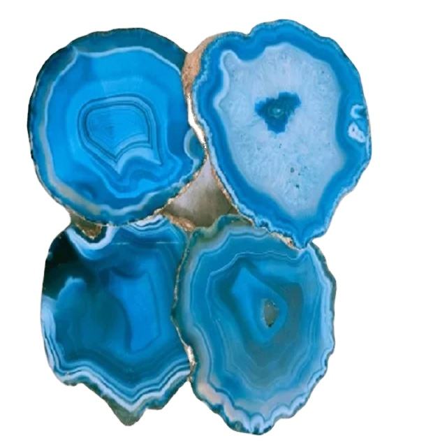 Wholesale Cheap Factory Price Carved Gemstone Crystals Healing Stones Black Onyx Small Coaster Slice with Gold Trim