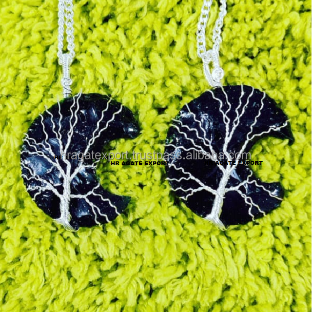 Handmade Black Obsidian Necklace Heart-Shaped Arrowhead Pendant Indian Agate Crystals Feng Shui Wire Wrapped Carved Mascot