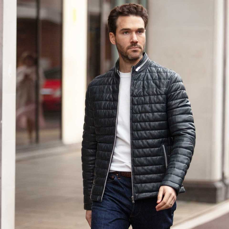 Professional Winter Coat Stand High Quality Men's Jacket Zip Closure Regular Fit Three Internal Leather Trimmed Pockets