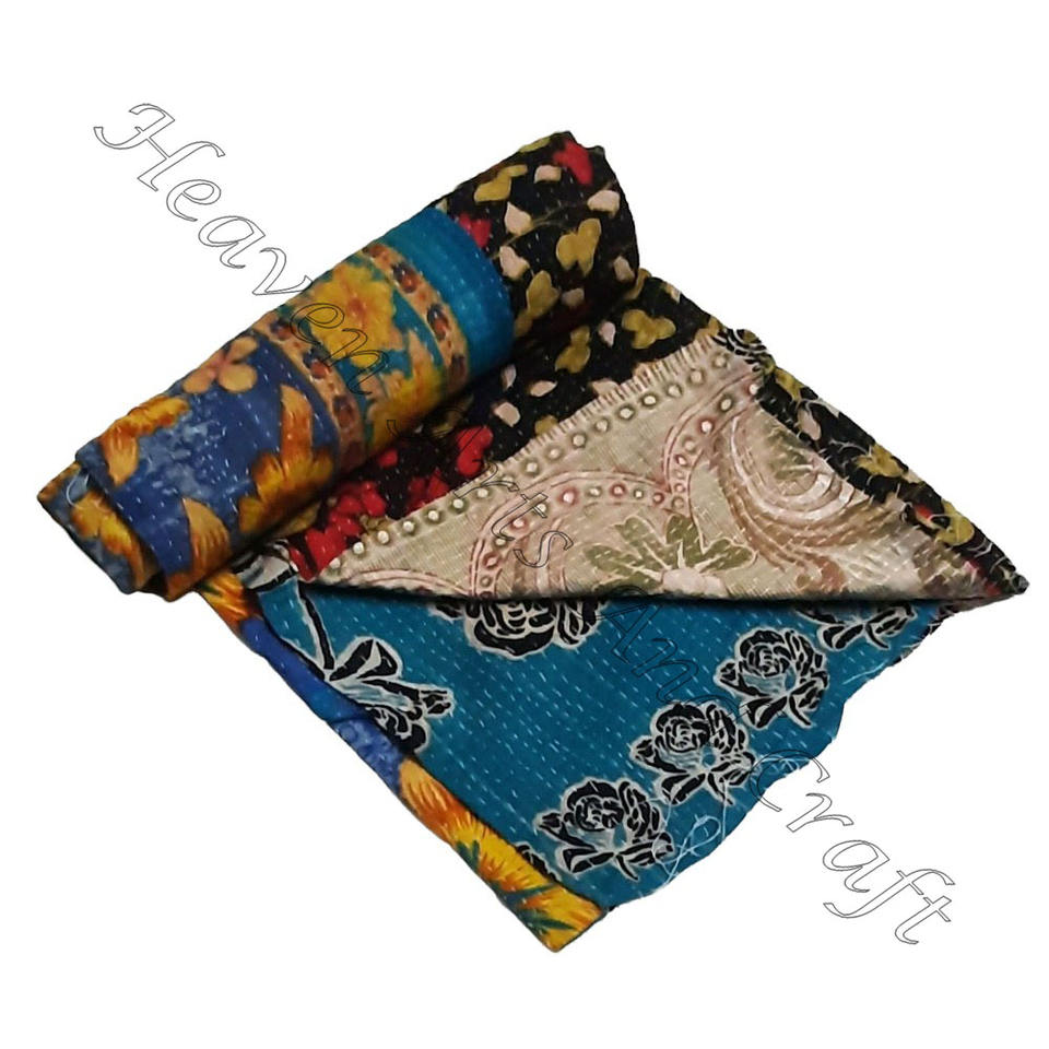 Wholesale Handmade Vintage Reversible Cotton Kantha Gudri Throws Indian Reversible Hand Stitched Heavy Throw Old Sari Blanket
