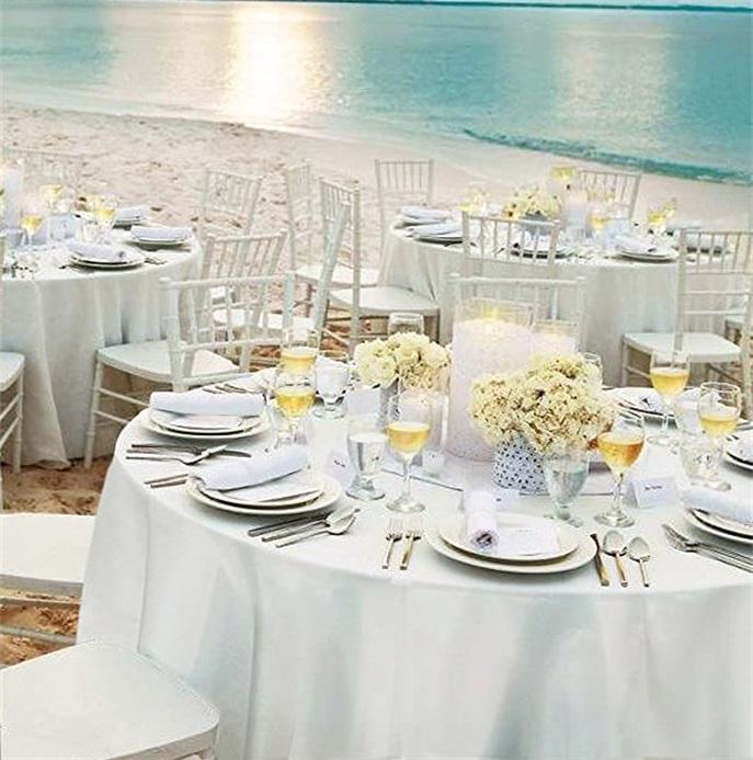 Wholesale Custom Pure White Polyester Tablecloths Bulk Advertising Pool Covers for Weddings and Events Woven Technique