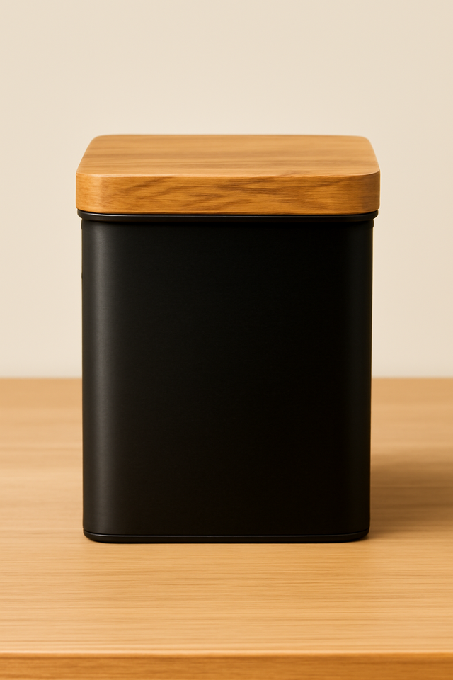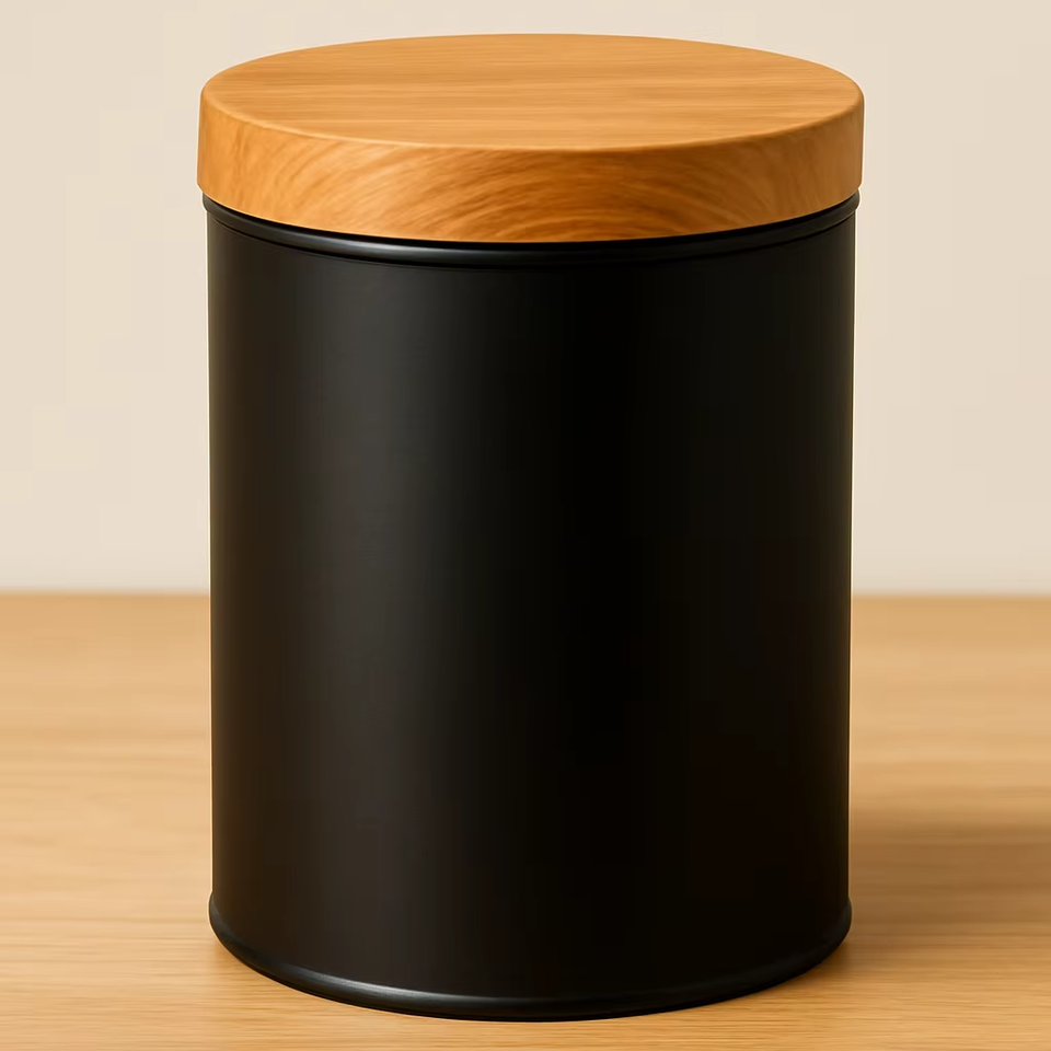 wholesale price Black Storage Canister with Bamboo Lid Round Shape for Kitchen and Home Organization premium wood lid jars