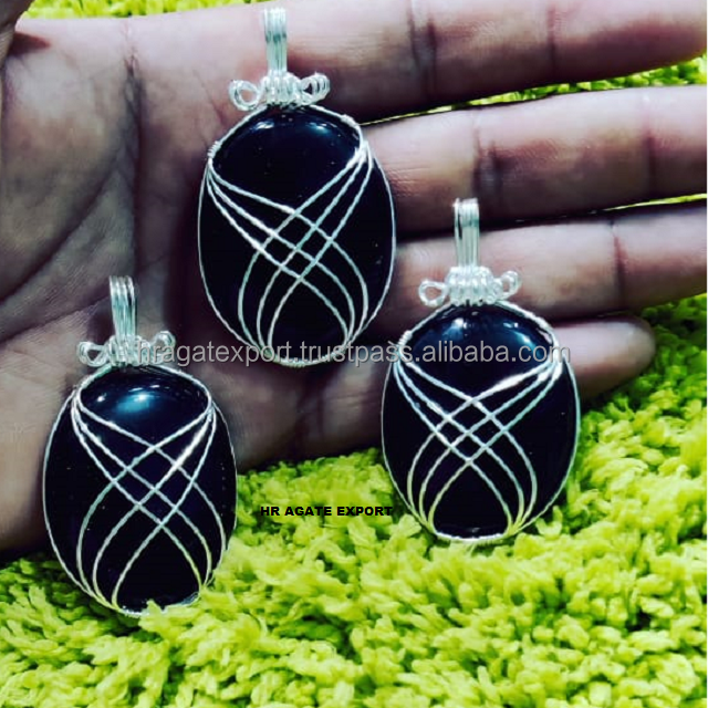 Wire Wrapped Blue Gold Natural Stone Pendant Necklace Religious Feng Shui Gemstone Jewelry Crystals Unique Wire Wrap Design