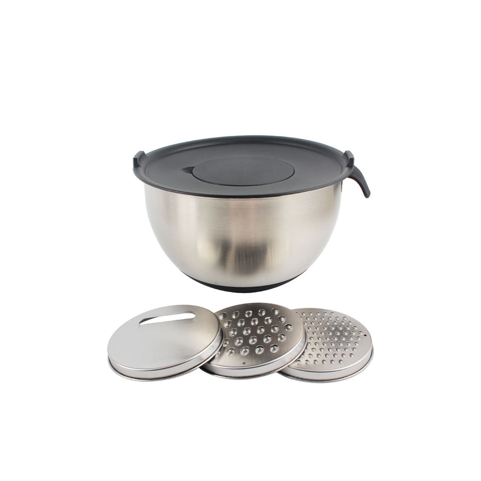 with the anti-slip silicone base, silicone handle, Airtight Lids and grater, Premium Stainless Steel Mixing Bowl Set