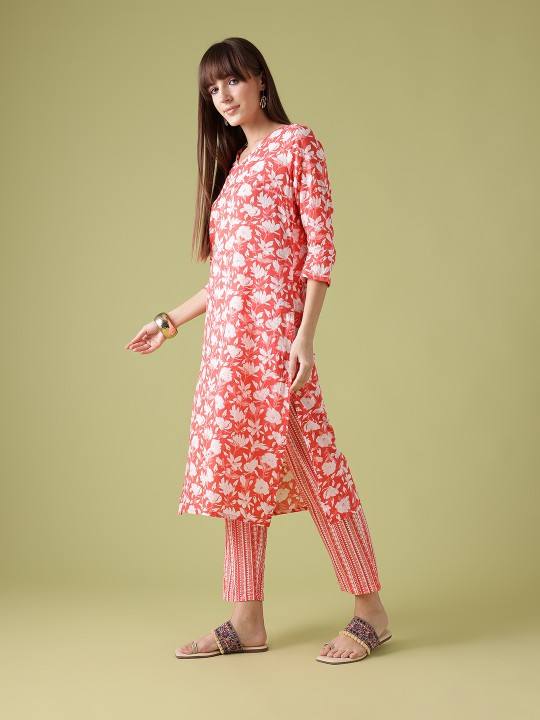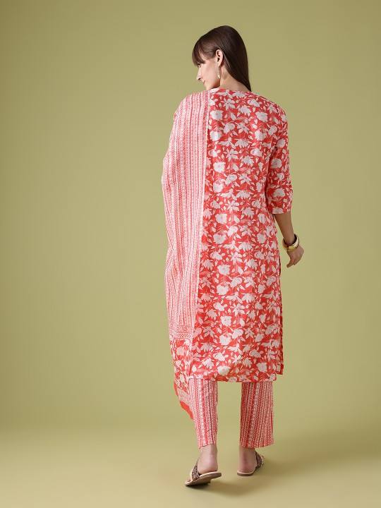 women Floral Print Pure Cotton Kurta with Trousers & Dupatta indian pakistan salwar kameez suit