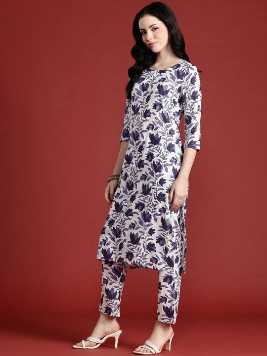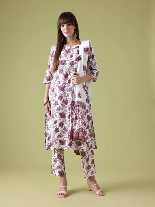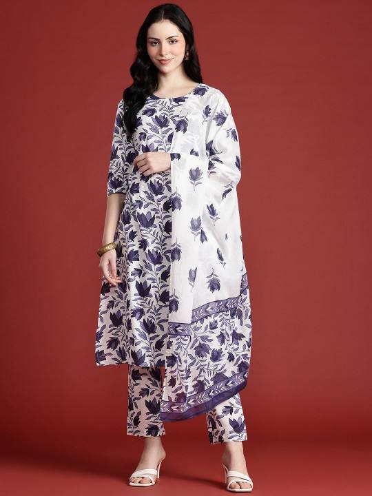 women Floral Printed Pure Cotton Kurta with Trousers & Dupatta indian pakistan salwar kameez suit