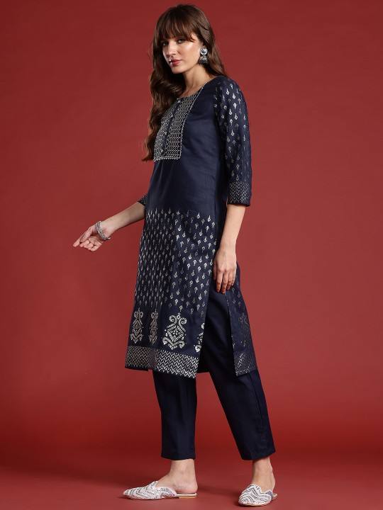 women Foil Print Yoke Design Gotta Patti viscose rayon Kurta with Trousers & Dupatta indian pakistan salwar kameez suit
