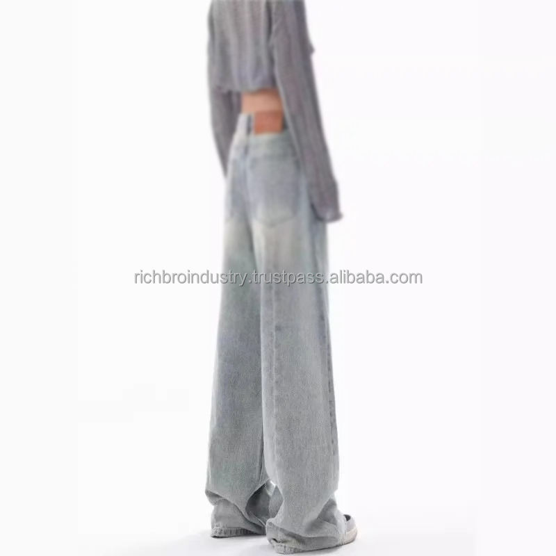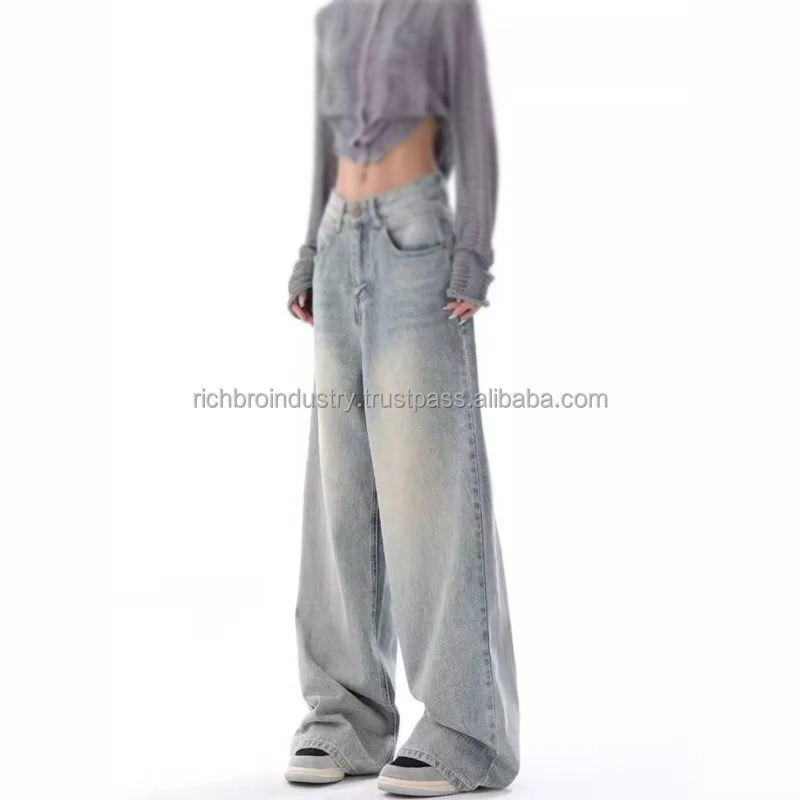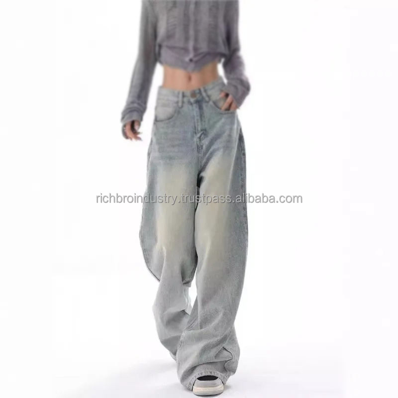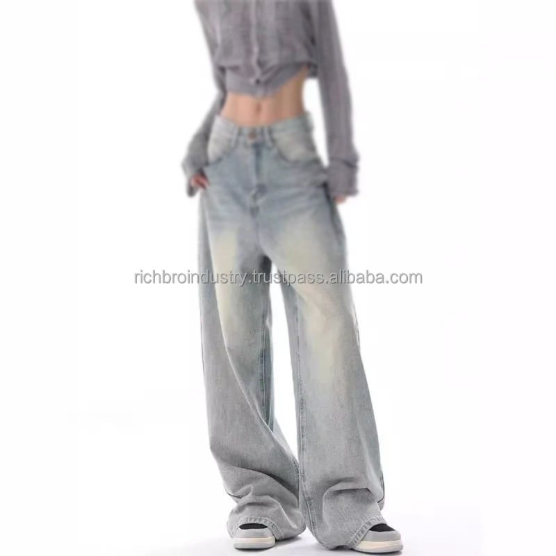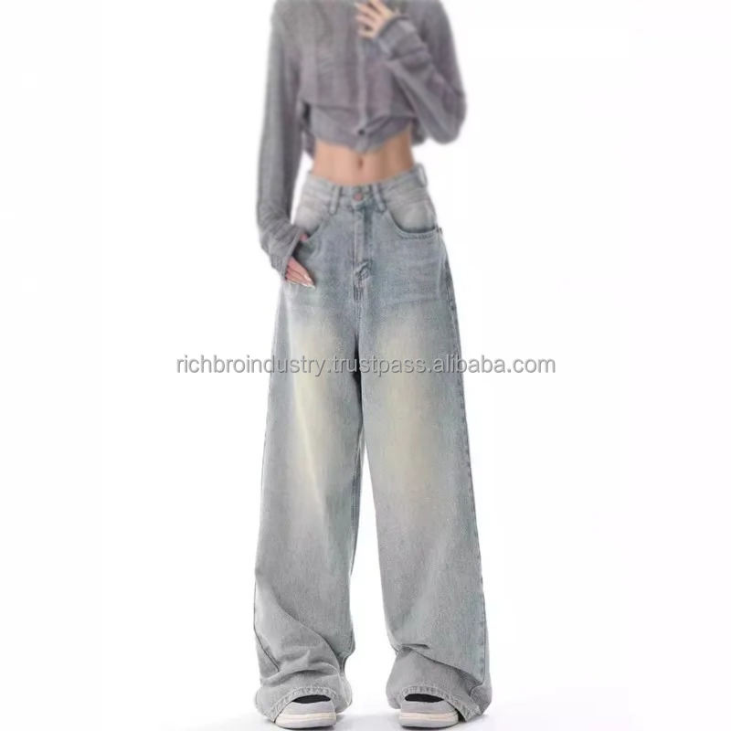 Women's Loose Straight Mid Waist Solid Casual Jeans Plus Size Breathable Eco-Friendly 100% Cotton Long Fashion Korean Streetwear