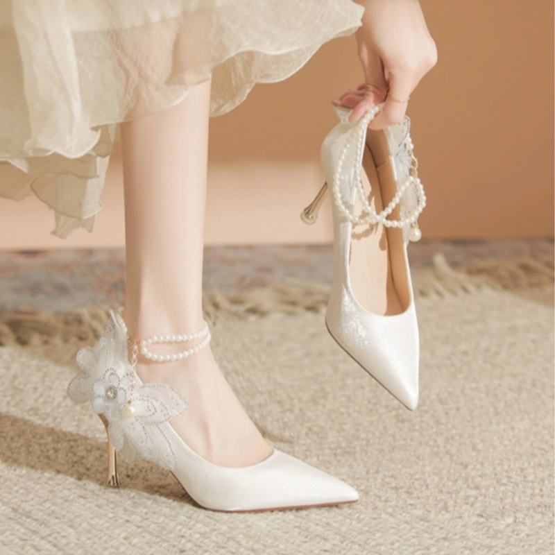 Women's Sexy Luxury Bridal Wedding Shoes Comfortable Silk Satin Pointed Toe Stiletto Heel Pumps
