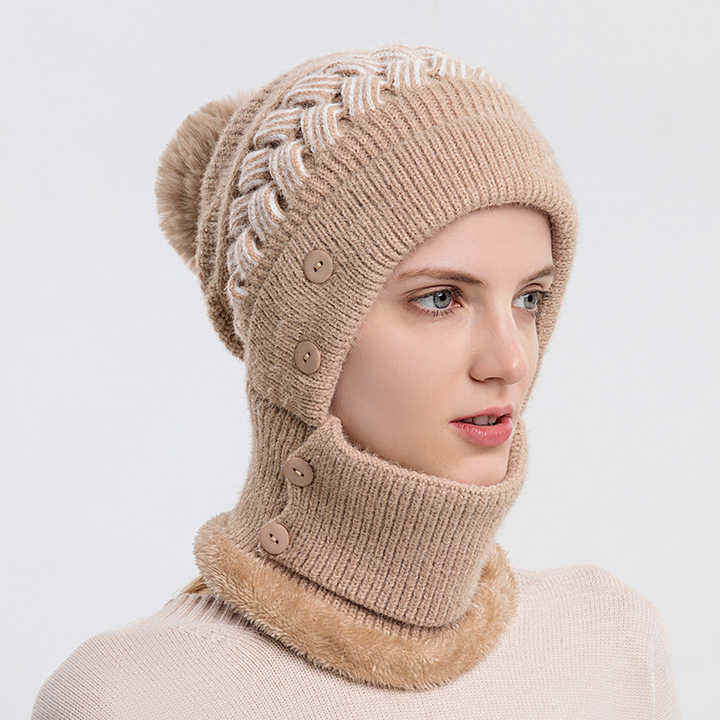 Women Autumn Winter Knitted Beanie Hat and Scarf Set