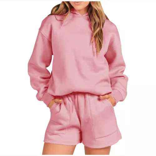 Women's Breathable Above Knee Winter Solid for Sweatpants and Shorts Set Comfy Trendy Daily Matching Outfit