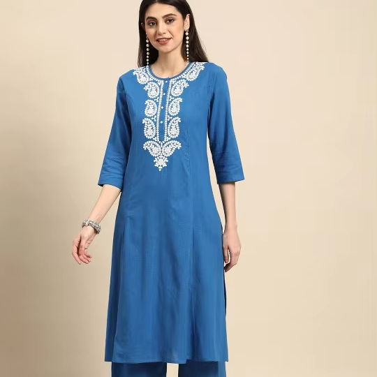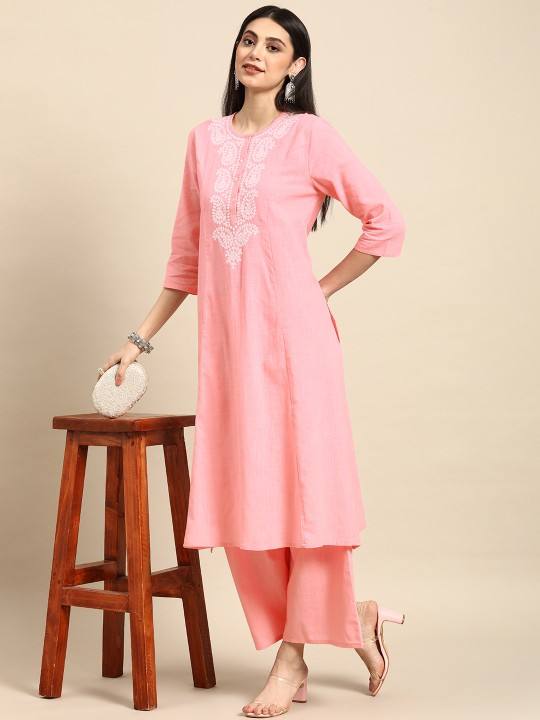 women ethnic Chikankari Pure Cotton A-Line Kurta with Palazzos indian pakistani salwaar kameez suit