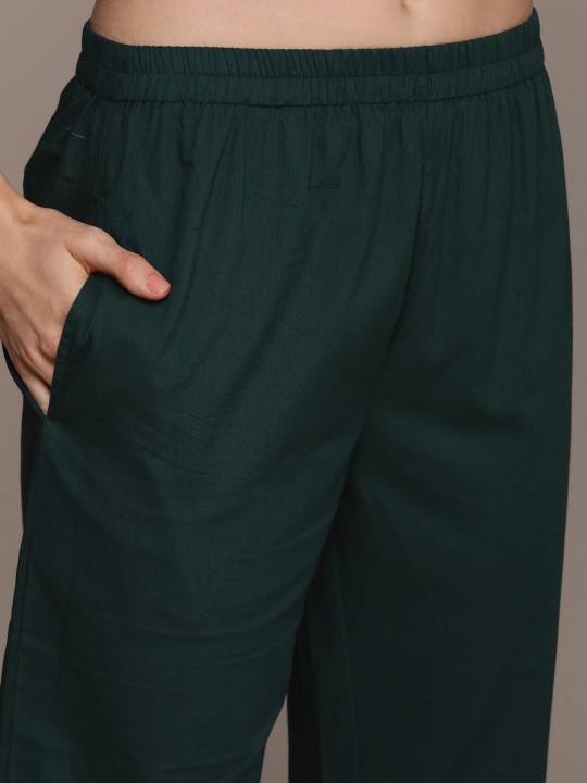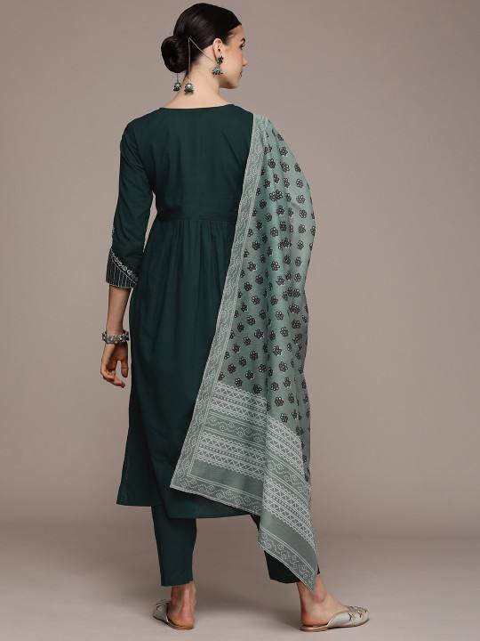 women ethnic Floral Embroidered Regular Pure Cotton Kurta with Trousers & With Dupatta indian pakistani salwaar kameez